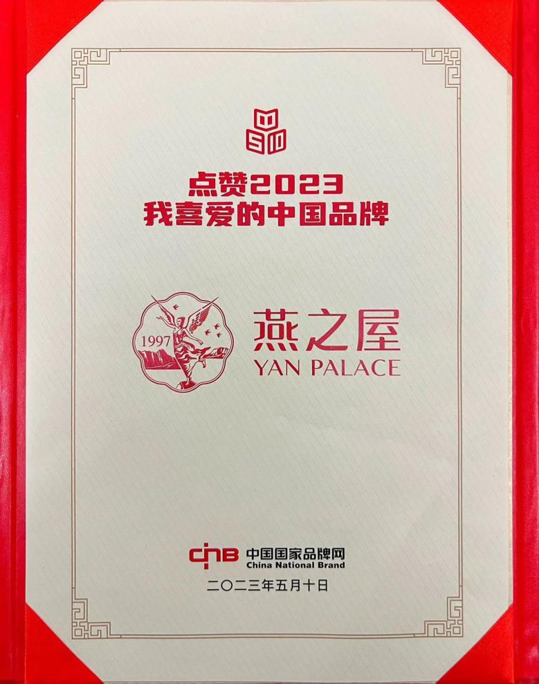 圖:燕之屋榮獲“2023 我喜愛(ài)的中國(guó)品牌”稱(chēng)號(hào)