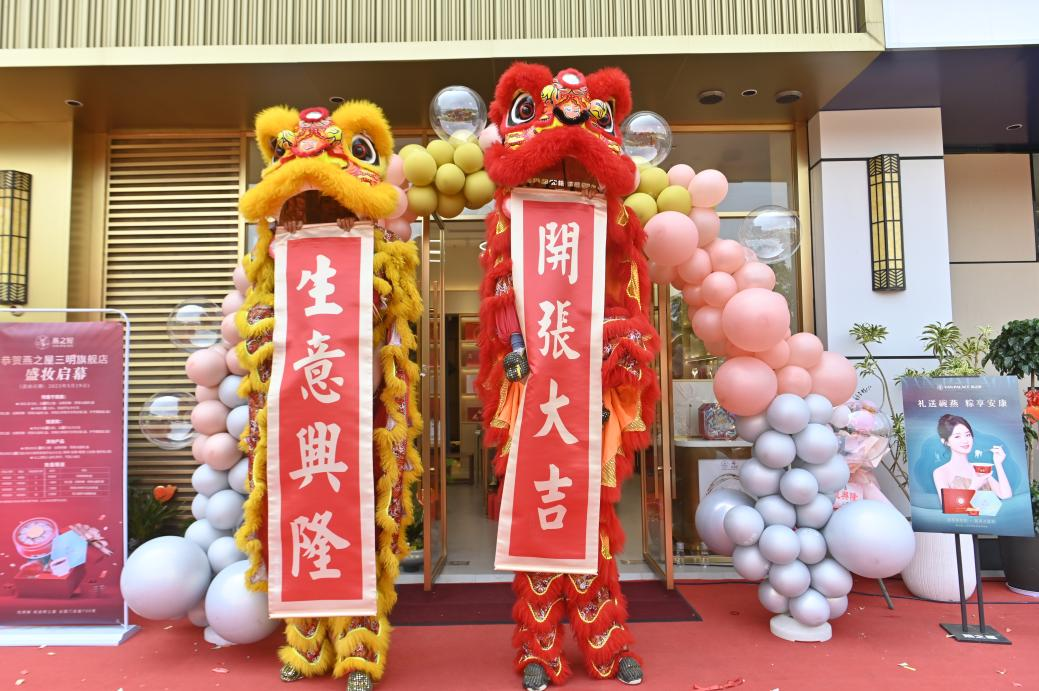 隨后,在嘉賓與客戶們的期待中,眾領(lǐng)導(dǎo)手持金剪,為燕之屋三明旗艦店的盛裝啟幕剪開(kāi)嶄新的篇章,振奮人心的禮花隨之綻放,引起現(xiàn)場(chǎng)陣陣歡呼與掌聲。當(dāng)喧鬧的鑼鼓聲再次響起,一對(duì)醒獅起舞,活靈活現(xiàn)的表演引人注目,掀起一陣高潮,更賦予新店開(kāi)業(yè)大吉大利的美好祝愿。