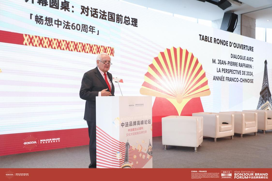 圖:法國前總理、法國展望與創(chuàng)新基金會主席讓-皮埃爾·拉法蘭出席第九屆中法品牌高峰論壇