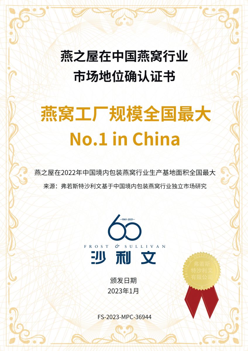 圖:燕之屋在2022年中國境內(nèi)包裝燕窩行業(yè)生產(chǎn)基地面積全國最大