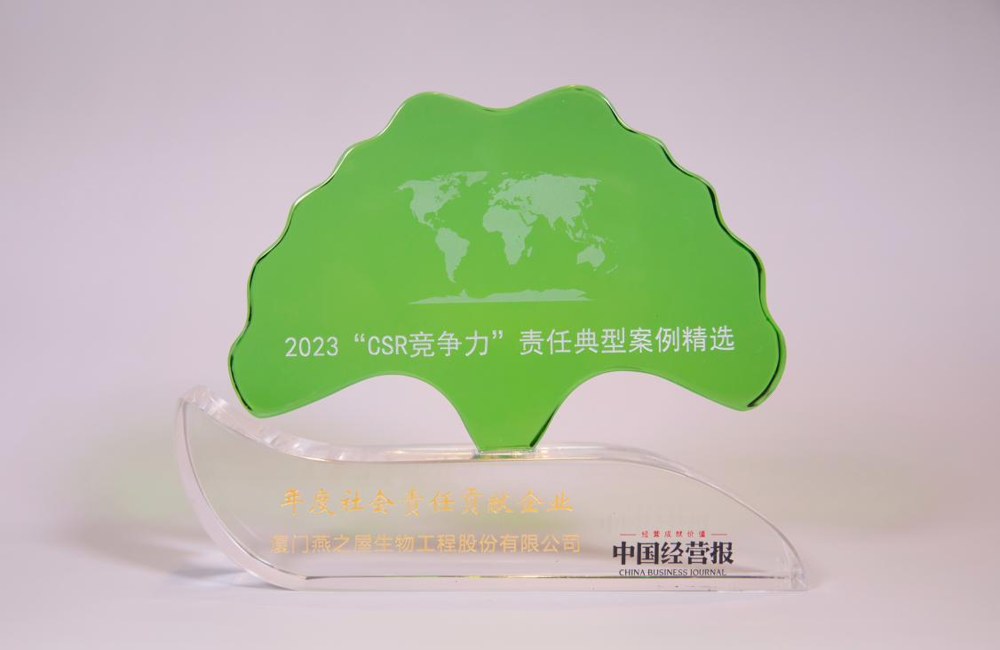 圖:燕之屋榮獲2023“CSR競(jìng)爭(zhēng)力”責(zé)任典型案例精選“年度社會(huì)責(zé)任貢獻(xiàn)企業(yè)”