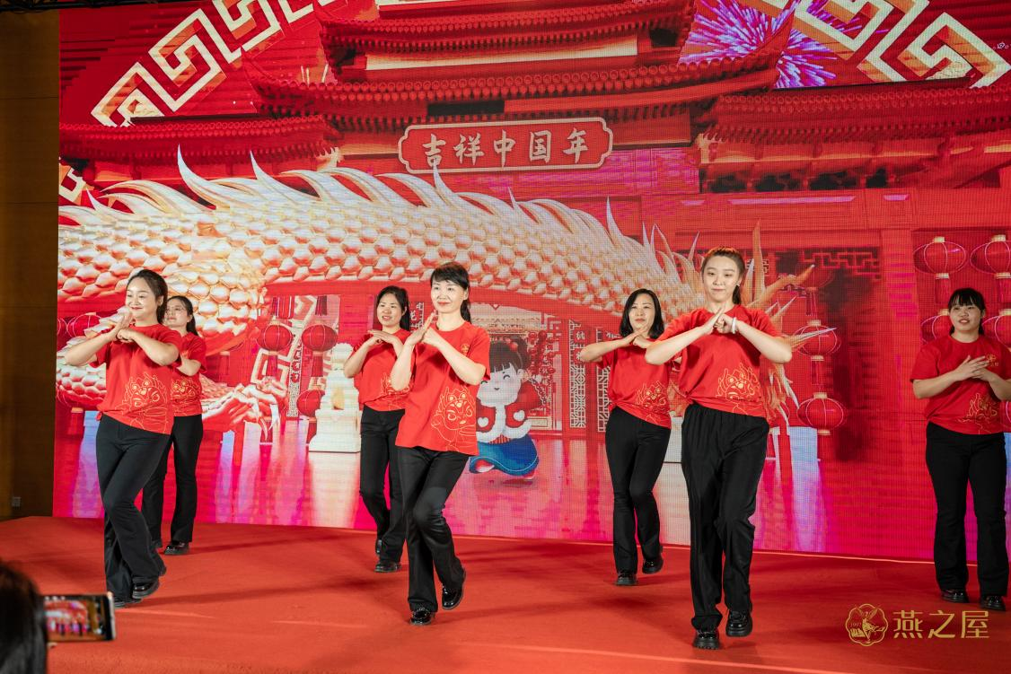 宴客廳流光溢彩、音樂環(huán)繞,彌漫著典雅高貴的氣息。燕之屋石家莊市場經(jīng)理賈夢橋作開場致辭,對諸位嘉賓的到來表示歡迎和感謝。隨后,燕之屋石家莊市場客服部帶來開場舞,中國風(fēng)裝扮與表演營造濃濃新年味,共賀賓客吉祥如意。