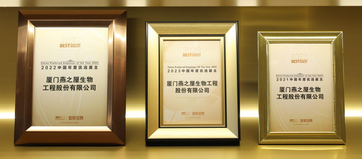 一直以來,燕之屋堅持創(chuàng)新實干、行穩(wěn)致遠(yuǎn),樹立專業(yè)、活躍、有愛的企業(yè)形象,打造企業(yè)與員工之間良好、和諧的勞動關(guān)系,彼此信任、相互成就。2022年至2023年,燕之屋陸續(xù)被授予“福建省2020-2021年度省級勞動關(guān)系和諧企業(yè)”、2023年度廈門市“雙愛典范”企業(yè)稱號。此次榮獲2023中國年度優(yōu)選雇主榮譽,再度提升企業(yè)口碑聲譽,彰顯企業(yè)實力與魅力。