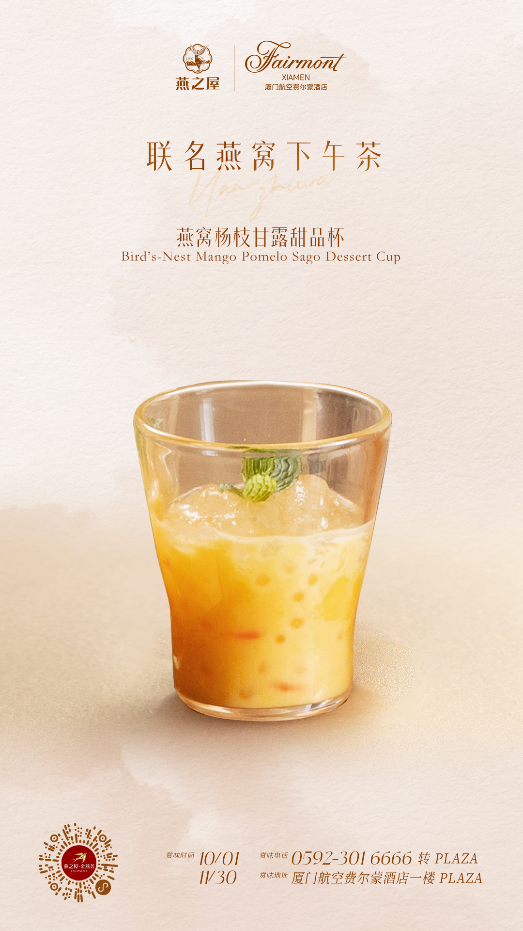 燕之屋與廈門費(fèi)爾蒙酒店聯(lián)名燕窩下午茶,將燕窩的溫潤滋養(yǎng)融入精致茶點,呈獻(xiàn)一席秋日滋養(yǎng)之作。這場東方雅宴于2025年10月1日至2025年11月30日在廈門航空費(fèi)爾蒙酒店1樓PLAZA大堂酒廊限時臻賞。金秋時節(jié),把生活調(diào)至“飛行模式”,于鷺島之畔的云端雅境中,細(xì)品這場融匯東西的味覺藝術(shù)盛宴,在秋日暖陽中感受時光凝駐的美好時刻。